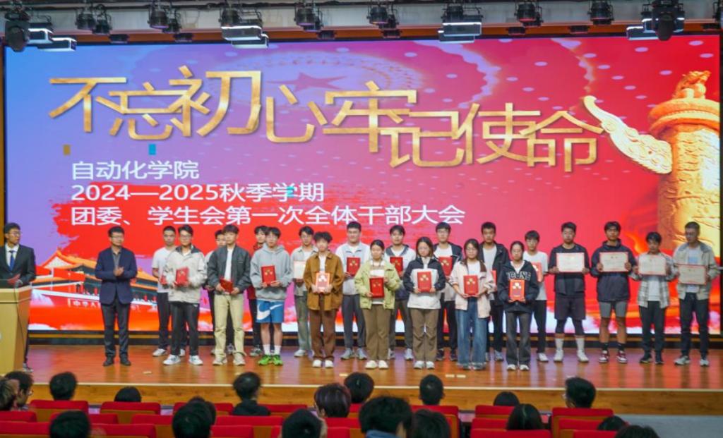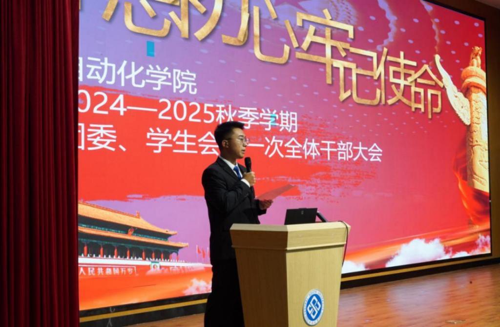 会议伊始,团委书记刘乐老师为新任主席团成员以及新任团委部长、副部长颁发聘书。随后,团学会主席李家增向所有新加入的干事们表示欢迎,祝贺同学们加入了自动化团学会的大家庭。他向同学们介绍了团学会的具体工作和职责使命,希望新干事们继往开来,奋勇争先,在前辈们打下的基础上总结经验,举一反三,传承好团学会的精神火炬,全心全意为同学服务,把工作扎实地做到同学们心中。