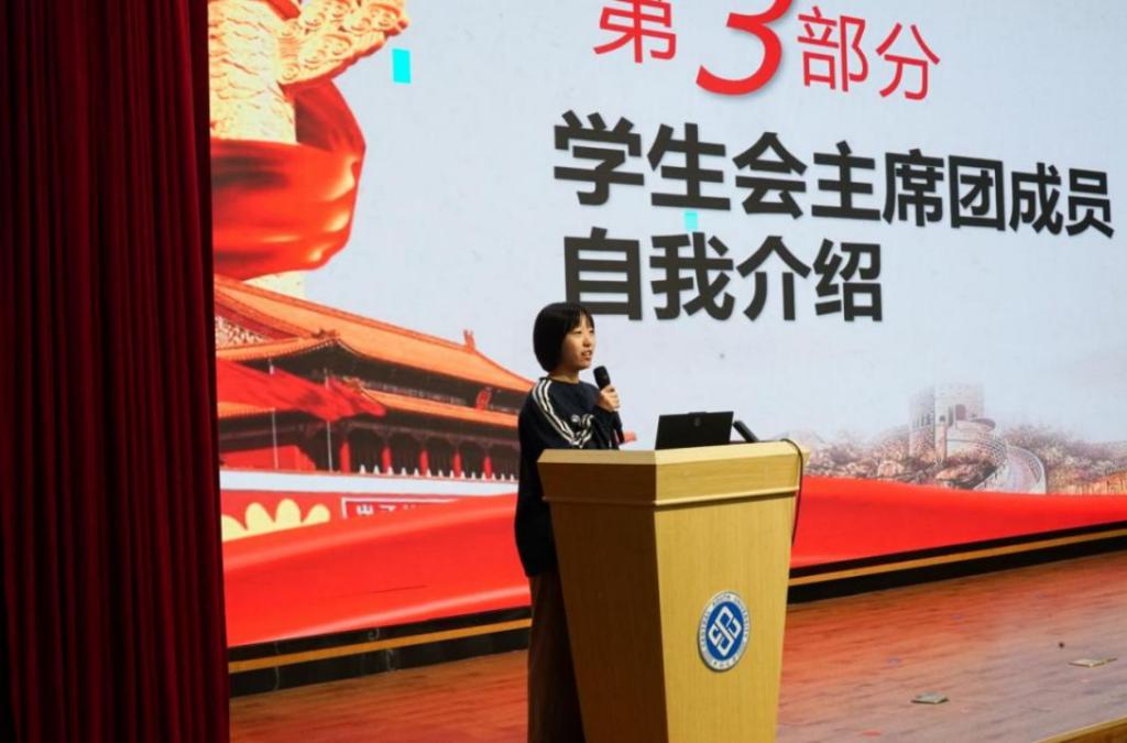 接下来,主席团各成员依次上台做自我介绍并表明自己对大家的期待。之后,办公室、组织部、宣传部、网信部、生活部、体育部、文艺部、青志协、科实部、社团部、学习部各部门部长依次向大家介绍了部门职能与部门组成,提出了未来的工作规划,帮助大家增进对团学会工作的了解,更好地融入团学会的大家庭中。
