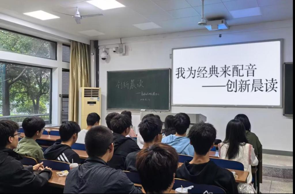 11月12日清晨,自动化与电气类2402班同学依托问渠晨读活动在A座教学楼开展“我为经典来配音”晨读活动。