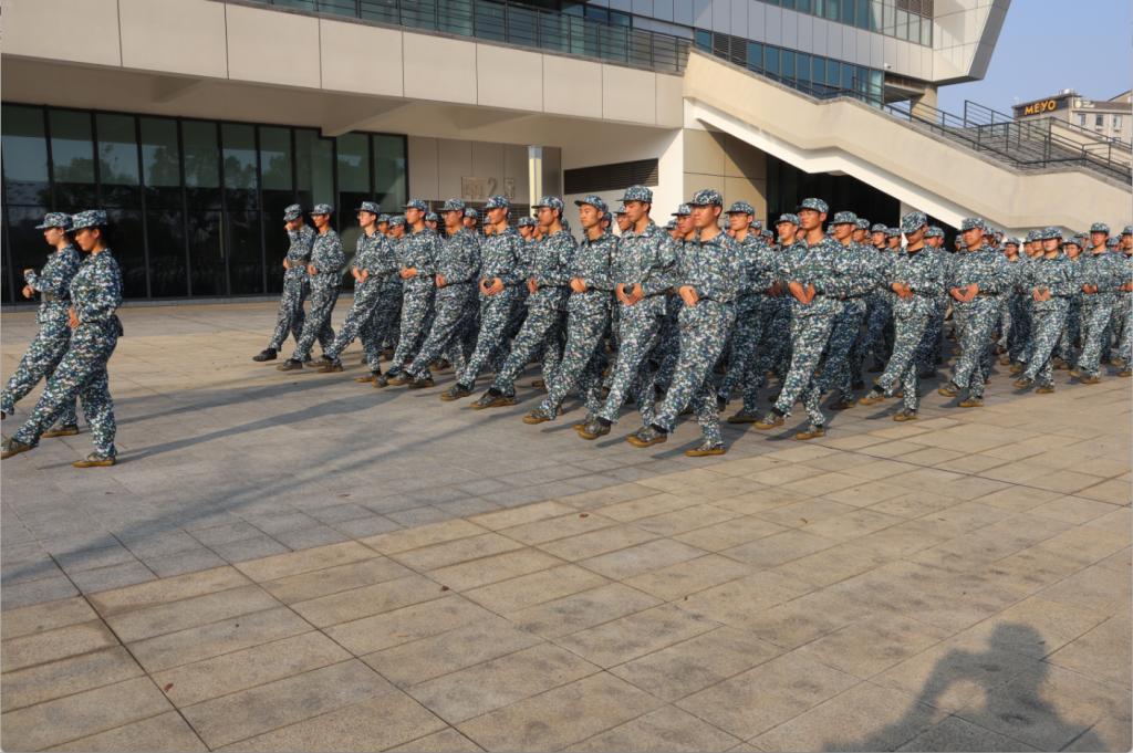 随着秋日气温逐步回升,军训的热情也渐渐高涨。截至10月23日,新生军训已顺利度过大半赛程,公司学员褪去了初时的生涩,继续进行擒敌拳与分列式训练。