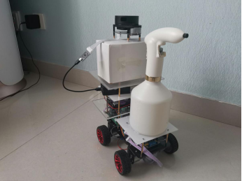 图4 员工发挥专业优势制作参赛作品消毒喷洒机器人