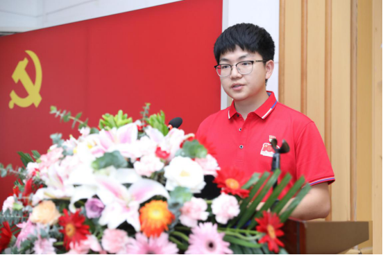 员工党员代表刘博文同学发言。他讲到,当今世界格局的特点是多元化、竞争强。科技打压、战略围堵,现在的中华民族面对着更加艰巨的挑战。但就是在这样的困境之下,党领导全国人民,取得了蛟龙潜水、嫦娥飞天、东风快递、天宫在建等一系列举世瞩目的成就。青年一代正在逐渐成长为国家科技进步的中坚力量。他表示,作为一名研究生党员,要把探寻学科前沿知识与社会实际问题结合起来,要奔走在以所学反哺回馈社会的锤炼之路上。在参加了系列党课及实践学习之后,他明确了将扎根基层作为自己未来的发展方向,誓将用实际行动奉献社会。
