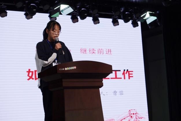 大会第一项内容是由员工会主席曹蓉为团学会成员讲解如何做好员工工作。曹主席在发言中提出了团学会要各司其职,密切配合,组织好院内各种活动,使团学会再创佳绩。同时她也表达了对新加入的干事们的鼓励和期盼。大会第二项内容是团委书记陶卓敏老师讲话。她提出希望团学会成员友好相处,团结一致。同时提醒每一位团学会成员要明确自己的目标,服务同学的同时提升自己的能力。最后表达了她对团学会全体成员的祝愿和期待,希望团学会每个成员都能度过一个充实的学年。