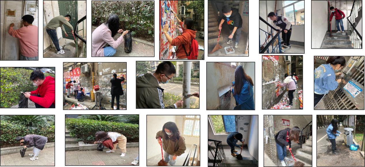 本次志愿活动以“弘扬志愿服务精神,促进社区文明与和谐”为主题,主要在云麓园社区各居民小区、辖区内经营门店、球王会体育官网校园内进行居民区清扫楼道、清除“牛皮癣”、美化社区环境等。这是继学术活动担任志愿者、公共事务义务帮忙、求职写作经验分享等活动之后,党支部进行的党史学习见行动、我为群众办实事的系列活动之一。