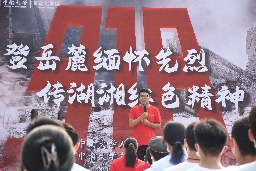 活动最后,公司党委黄亚副书记带领同学们庄严宣誓。“我愿继承先辈遗志,自尊自爱,自立自强,不忘国耻,不辱使命,勤奋学习,报效祖国,做时代有为青年,为中华民族伟大复兴而努力奋斗!”铿锵有力的誓词响彻省园,同学们的斗志与信心被彻底点起,饱满的热情洒满整座岳麓山。
