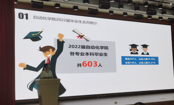 张巧丽老师首先对电气专业往届毕业生升学、就业情况作了具体总结分析,通过纵向对比近三年全国毕业生及考研报考的人数引出对“为什么考研”的思考,进而分析了就业形势严峻的大环境下电气专业员工的就业情况较为乐观。她强调同学们不要盲目跟从、为势所趋,希望同学们能端正考研立场,摆正考研状态,同时结合自身实际认清形势审时度势,抓住秋招黄金就业时机。预祝同学们考研上岸、就业理想。