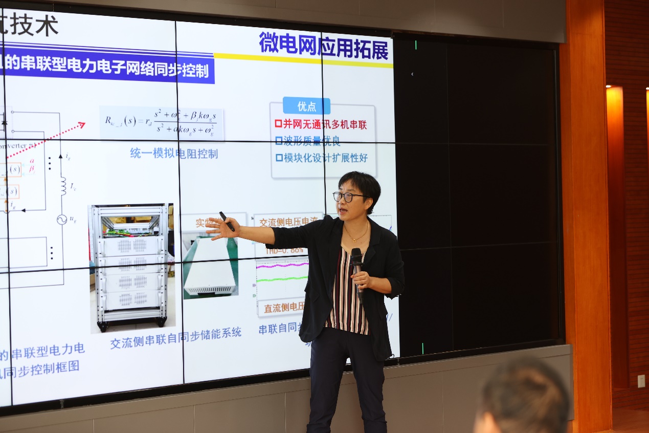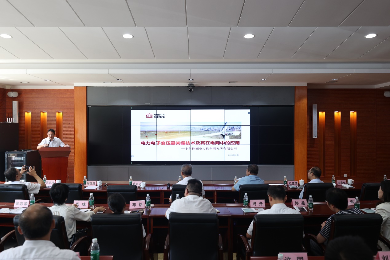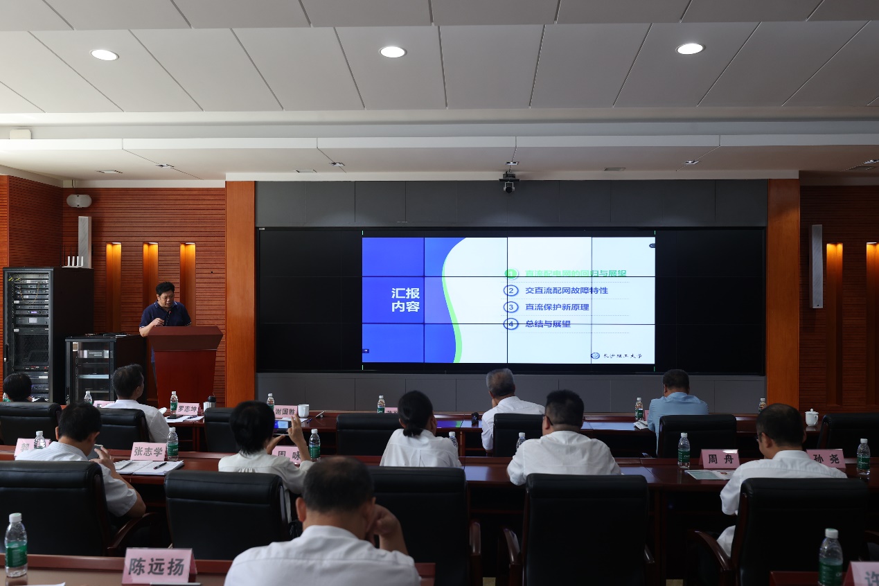 副经理粟梅教授、国网湖南电科院唐海国博士、中车株洲电力机车研究所张志学教高、湖南大学郭祺副教授、长沙理工大学匡文凯老师五名专家依次就电力电子设备柔性控制技术及在电网中应用等方面的研究成果做了主题报告,进行了解读分享和探讨交流。活动中,湖南省电力有限公司公司总工程师梁剑与上述五位主讲专家们深入探讨电力电子设备技术及其在电网中的应用场景。他指出,电网企业未来面临“保供”和“转型”两大挑战,电网数字化转型和电力电子控制技术是构建新型电力系统的关键。参会专家的主题报告在新型配电网电力电子支撑方面带来很大启发,梁剑总工程师表示希望以本次活动为契机,结合湖南省电力有限公司“双创中心”的建立,加强与各参会单位的科技创新合作,从电网实际问题和需求出发,催生一批具有引领性、带动性的创新型技术成果,并转化到实际应用中,共同推进湖南电网的发展。