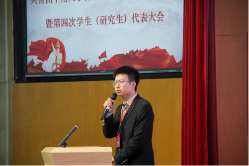 图6:球王会第三届研究生会主席周冰星作工作报告