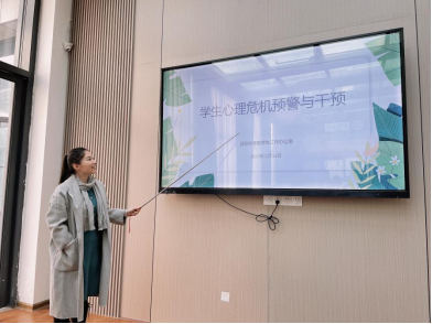 会议开始,学院全体辅导员依次就近期员工工作各方面的情况作了汇报,并对工作中存在的一些重点、难点进行了活泼、坦诚而充分的交流。随后,学院心理健康教育专干双羽老师作了以《员工心理危机预警与干预》为主题的汇报,双羽老师从干预对象、干预过程、心理危机和事件处理四个方面进行了讲解。首先,她明确了需要进行干预的对象类别和信息,建立“预防教育-早期预警-危机干预-后期跟踪”的全方位、全流程的动态工作机制,在对员工心理突发事件进行处理时要遵循“预防为主、统一领导,常备不懈、分工负责,反应及时、学院为主,措施果断、部门配合”的基本原则;接着,她对不同类别和情况的员工突发事件的处理流程进行了全面细致的介绍,成立员工心理危机事件处理工作小组,在学院的统一部署下持续帮助和关怀员工。