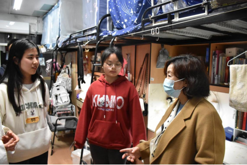 图1:经理阳春华教授在女生宿舍和同学们亲切交流