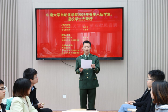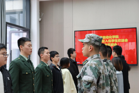 随后,入伍员工陈宇杰、王赞涛先后发言。他们都表达了学校、学院对他们培养的感激之情,并立誓以实际行动践行报国精神,到祖国最需要的地方去建功立业。王赞涛同学在填报志愿时,毅然决然选择去西藏入伍,这是公司史上首位前往西藏入伍的同学,也是今年全校唯一一位去西藏艰苦地区服役的同学。两位优秀退役士兵耿博琪、黄钊也依次进行了铿锵有力的发言,他们分享了充实且有意义的军旅生活,并多次强调老员工去当兵,一定是人生宝贵经历的一抹绚丽色彩,他们对学弟给予了宝贵建议,期待他们早日凯旋。