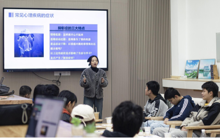会议伊始,李静茹老师以“手拉手,心贴心”为切入点开始了本次心委培训讲座,她认为心理委员的职责是将人与人之手相牵,人与人之心相连。首先,李静茹老师主要从高素质的团队队伍、分工明确的朋辈互助队伍和多元化的心理教育平台三个方面向大家详细介绍了公司心理健康教育中心的构成及近年所取得的成果。随后,她从医学角度和积极心理学角度入手,通过简单易懂的图文分析了不同心理状态之间的区别与联系,向大家介绍了一些常见的心理疾病及其症状,如:精神分裂症、抑郁症、狂躁症等,并传授一些简单的判别方法,用以观察身边同学的心理健康状况。此外,李静茹老师指出,朋辈心理互助员是集信息报送员、谈话反馈员、活动组织员三个职位于一体的重要角色,她呼吁大家要及时发现危机信息,能够准确识别危机程度并且采取正确的方法手段来处理危机信息。