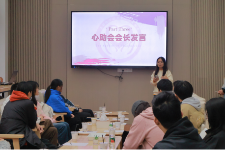 接着,学院朋辈心理互助会培训部部长张维源向大家介绍了本学年心理互助队员的评优细则,朋辈心理互助会会长张可爽介绍了学院心助会的职能和工作。张可爽同学分享了她对心理委员的认识和理解,她认为“心理委员不仅是一个职务,更是一种担当”,她鼓励大家积极参与心助会举办的各项活动,并热切期待大家可以对学院朋辈心理互助会的日常工作提出宝贵意见。