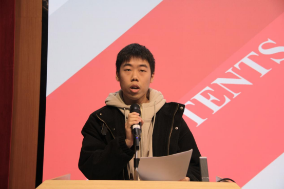 研究生会主席马润洲作研究生会述职报告。报告主要从本领建设和员工服务两大板块进行述职,并总结了研究生会的主要成绩,表示会继续提高能力更好为同学们服务。