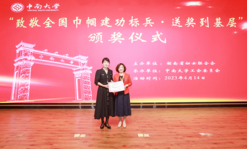 在颁奖仪式上,付刚华副书记向与会嘉宾致辞。他指出,过去一年中,学校广大女职工以习近平新时代中国特色社会主义思想为指引,积极进取、努力拼搏,始终走在时代前面,尽展巾帼风采,在各自岗位上建功立业,全国巾帼建功标兵获得者阳春华教授就是其中的典型代表。他表示,学校号召全校女职工要以受表彰的先进典型为榜样,坚定理想信念,厚植家国情怀,勇于担当作为,岗位奋斗建功,不断为强国建设、民族复兴书写中南力量。