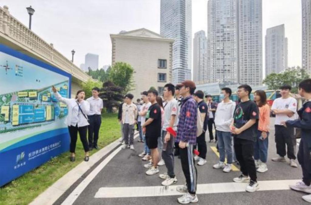 启动仪式结束以后,支部成员来到了长沙供水有限公司南湖水厂进行现场参观。南湖水厂是一座日供水规模20万吨的现代化水厂,主要承担着五一大道以南,芙蓉路以西,南湖路以北区域的供水服务。南湖水厂运营中心主管熊老师为大家带来了生动活泼又全面细致的讲解。在她的带领下,同学们参观了南湖水厂的制水工艺,了解到湘江水经过取水、沉淀、消毒、过滤等12道工序后变成自来水的全过程。“原来看起来很清澈的湘江水需要经过这么多工艺才能变成合格的饮用水!”在得知洁净饮用水的来之不易后,同学们发出了阵阵感叹。