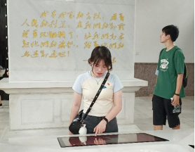 活动结束后,本科生一支部书记徐雪婷老师进行了总结发言:“每一位烈士都是一座精神丰碑,在参观展厅内陈列、追忆英烈们的革命事迹时,我们深刻体会到党领导全国各族人民取得的伟大成就来之不易。同时,通过开展创新活动,我们沉浸式体验了中国革命力量由小到大、由弱到强,最终取得彻底胜利的艰苦过程。”
