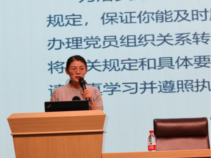 接着,党委组织干事陈瑶老师对党组织关系转接等事项做了详细说明。本科生五支部候晓双同学、本科生六支部曹蓉同学以及研究生三支部刘一顺同学进行了优秀党员事迹报告分享,用他们的实际行动和亲身经历和大家分享了老员工党员如何将青春与奋斗相结合,勇做走在时代前面的奋进者、开拓者、奉献者。