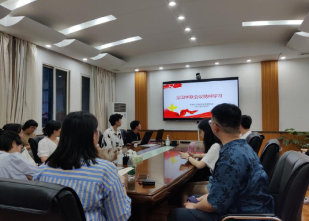 6月8日19点,为贯彻学习党的二十大精神,学习传达全国学联第二十七届委员会第二次全体会议精神,球王会研究生会在民主楼210会议室举行全国学联会议精神学习会,研究生会全体成员参加,研究生辅导员、研究生会指导老师刘雯和常秋碧出席会议。
