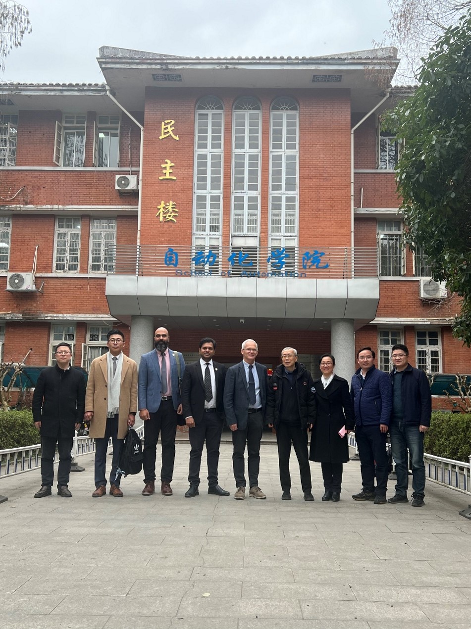 随后,Stephen Eggins一行来到“飞机起降系统智能控制”实验室、“工业互联网创新”实验室及“轨道交通安全监测”实验室参观指导,与陈志文、陈致蓬、吴德浩等老师就实验室建设规划、技术创新应用等方面进行了交流。