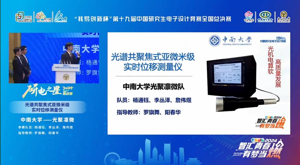 “光聚凛微”团队的参赛作品是一款光谱共聚焦式亚微米级实时位移测量仪,旨在打破国际垄断,满足汽车制造、半导体等支柱产业中微纳测量与精密加工的国家重大需求。设计理念以简驭繁,提出控制器+传感头的至简方案,摒弃以工控机做运算处理的传统方案,集成度极高;原创提出的时空联合位移分析算法,更是嵌入至FPGA并行架构内,处理帧率从传统8Kfps突破至30Kfps,运算速度极快;与国际标杆仪器相比,以更低的光学分辨率,实现了更高的测量精度,重复性精度达到百纳米级别。作品在球王会罗旗舞教授和阳春华教授的指导下完成。团队队长杨通钰同学在获奖后表示,在未来规划中,不管继续从事科研,还是投身产业,不管身在何处,他们都将始终坚持勇于创新、投身祖国科技事业的初心。