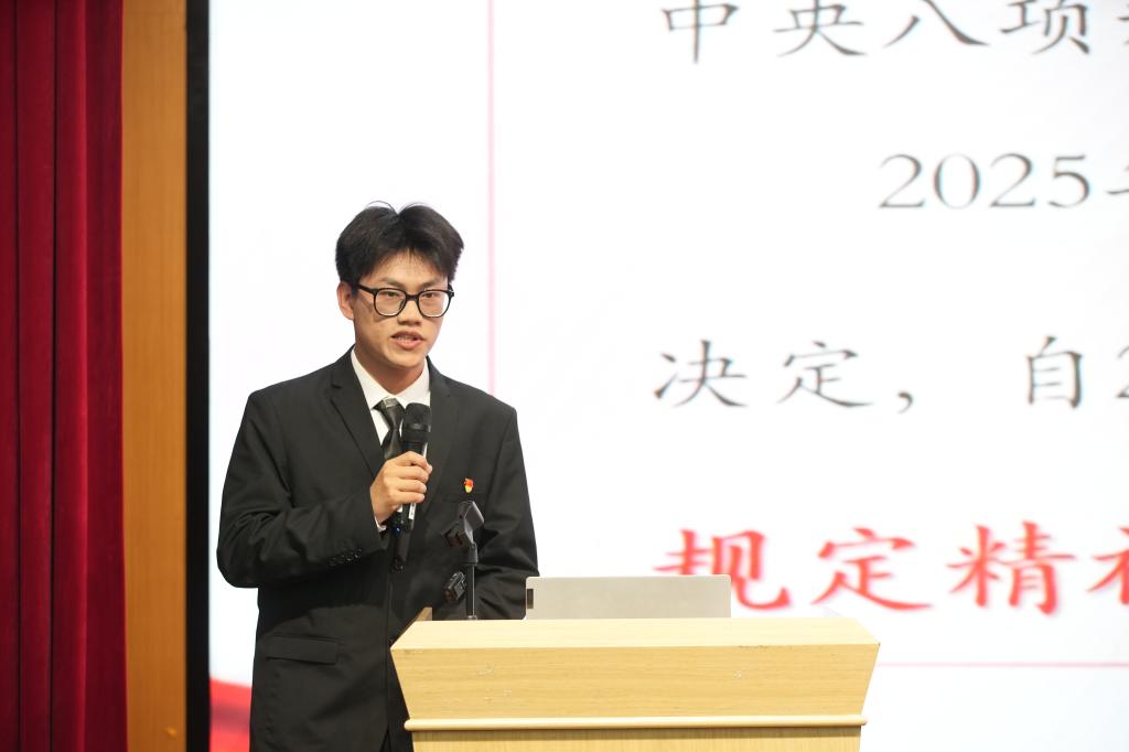 比赛中,研究生十三支部曹新雅以《以中央八项规定为镜,铸学术诚信之魂》为题,贯通廉政建设与学术伦理,揭示纪律规矩对学术生态的重塑作用;本科生六支部杨钧植在《中央八项规定精神学习》中,系统阐释政策发展脉络,通过基层调研案例具象化制度执行力;本科生三支部鲍嘉祺以《以案为鉴守初心 高校清风正当时》为切入点,结合高校违纪典型案例,叩问青年党员筑牢纪律防线的时代价值。选手们以扎实的理论功底和生动的语言表达,展现了青年党员的深度思考和踊跃实践。