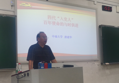 党校原常务副董事长唐建华教授讲授《四代共产党人百年使命的与时俱进》。唐老师通过一个个震撼人心的“入党人”数字和一个个扣人心弦的“入党人”故事,讲述了革命先烈们为了新中国所付出的巨大牺牲,并带领预备党员一同为革命先烈的付出默哀致敬。
