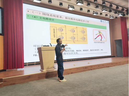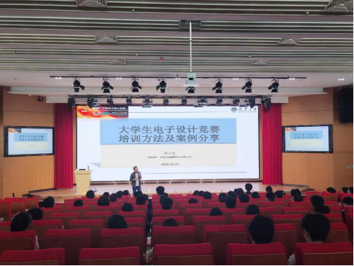 陈文光教授从老员工电子设计竞赛的特点、员工应具备的能力、竞赛培训方法等方面进行详细介绍。他以全国老员工电子设计竞赛真题为例,通过分析具体的解题方法、技术要点和命题趋势,让员工们对电赛有了全面了解,并在竞赛管理、训练方式和高效备战等方面对负责电赛的老师提出多项建议。整场讲座内容丰富、讲解细致、分析透彻,具有很强的指导性和针对性,师生们都表示受益匪浅。